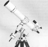 Takahashi EM-200 equatorial mount with RA drive and polar alignment scope with illuminated reticle, on adjustable wooden tripod. |